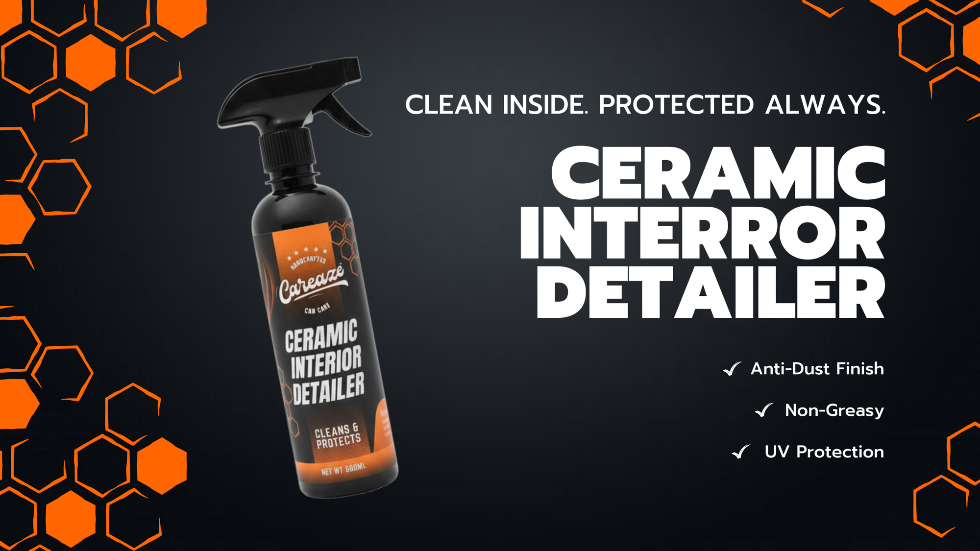 Careaze Ceramic Interior Detailer, an advanced SiO₂ ceramic-infused interior protectant engineered for long-term protection, dust resistance, and UV defense.